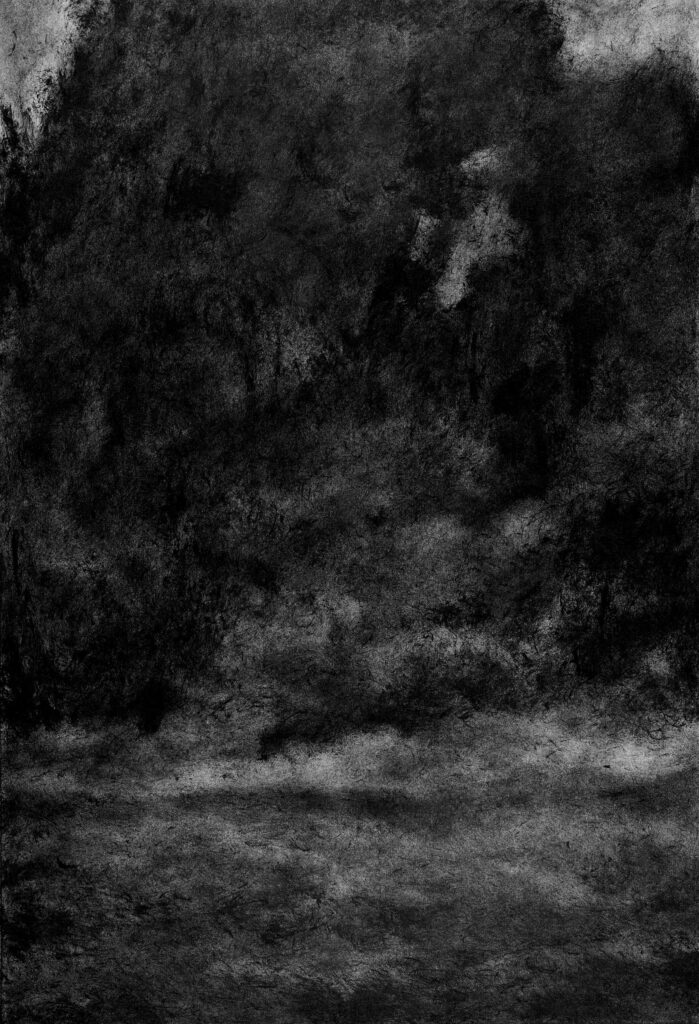 Le noir, une forme de mystère y perdure depuis la nuit des temps. Inquiétant mais surtout inconnu, ce qui s’y tapit peut prendre toutes les formes vivantes ou imaginaire. Il relie les mondes et les espaces entre eux, qu’ils soient réels ou chimériques, provenant des âges lointains ou du présent. C’est le reflet de ce qui fut et de ce qui sera probablement. Cet élément à l’infini potentiel suggestif se rapproche dans mon esprit de ce qui pourrait définir une partie du sentiment naturel. Un monde aux imperceptibles connections dont la sophistication et la richesse dépassent de loin nos propres perceptions. Le nature et le noir se lient dans le mystère et le fantasme.